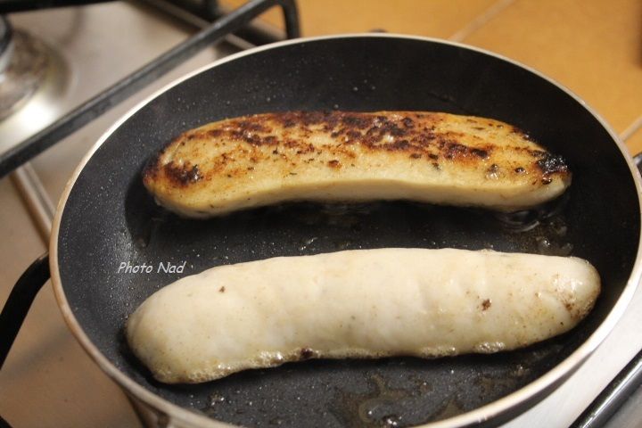 Les mettre à cuire 5 min dans une poêle avec très peu de beurre. Coupez la chair en fines tranches. Pour cela 5 minutes de cuisson de chaque côté sont suffisantes si vous optez.