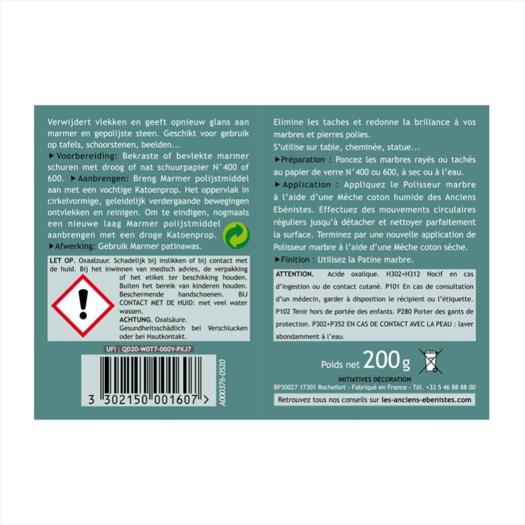 Signaler un contenu inapproprié. Pate a polir verre. Nettoyer votre marbre à laide du Décrassant Bleu SP Cire puis rincer à leau claire Si le marbre est rayé poncer les éventuelles rayures avec la Cale équipée de Papier Finishing 220-320-400 Saupoudrer de Poudre à Polir le Marbre la surface après lavoir humidifiée deau.